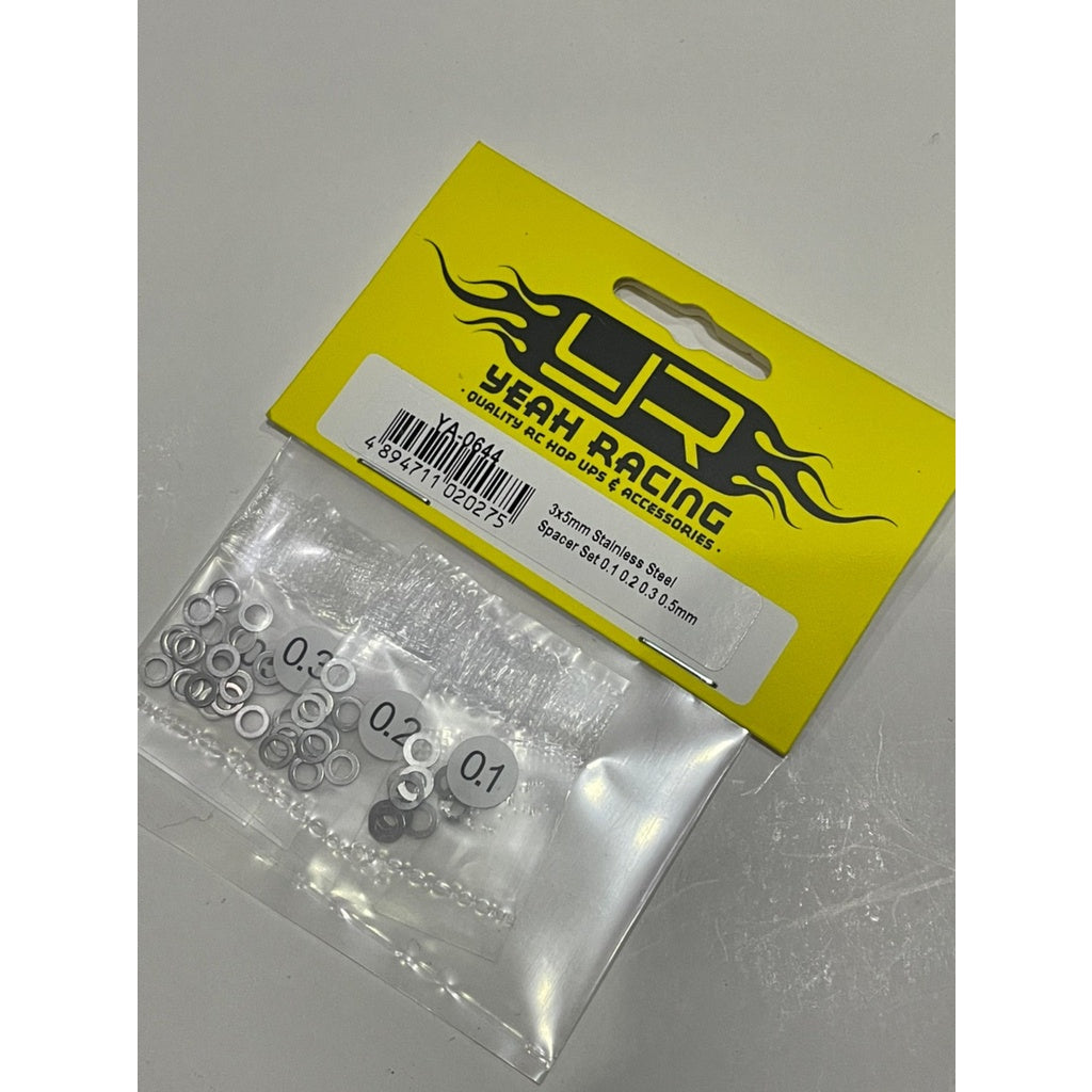 Yeah Racing 3X5MM STAINLESS STEEL SPACER SET 0.1 0.2 0.3 0.5MM